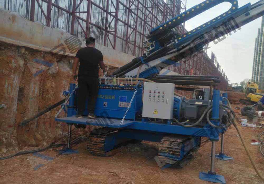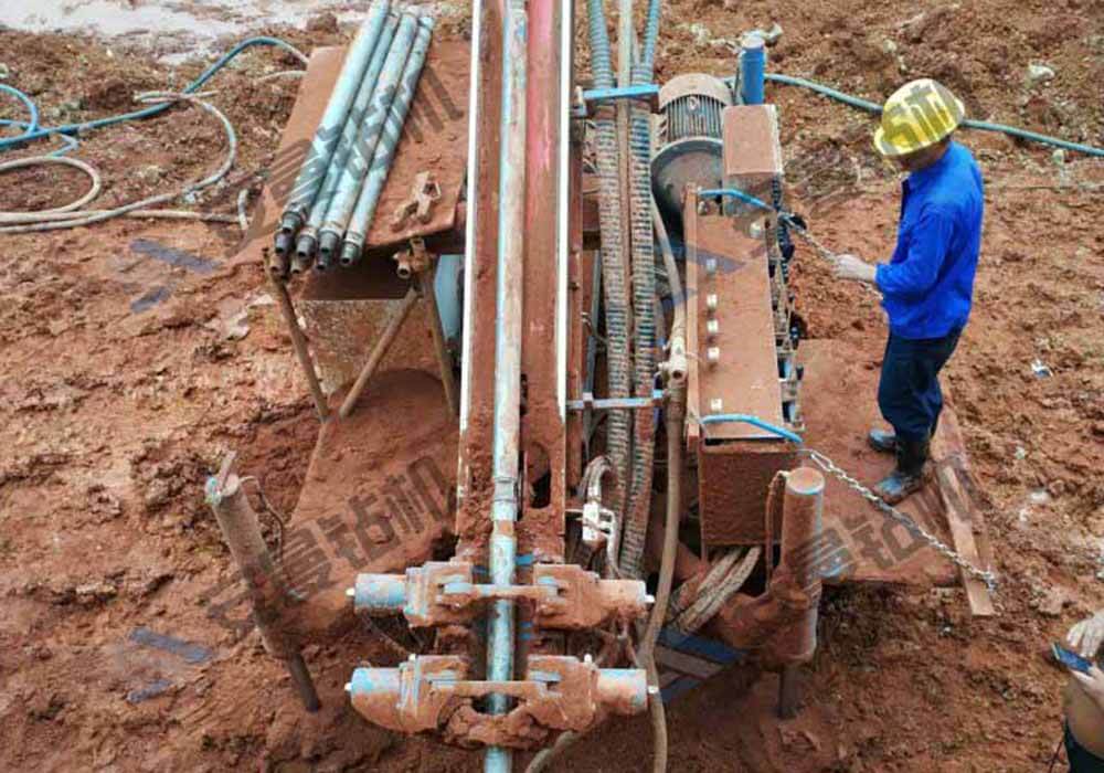 8. Finish removing the drill pipe. Machine move to other place, put anchor cable in the pipe |
