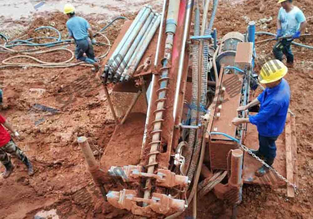 6.connect 8pcs of 89mm drill pipes, drilling and slag discharge till work finished |