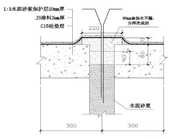After the grouting of the anchor hole, the 40-thick water unleakage construction surface in the anchor hole is not left out in time, which affects the subsequent waterproof construction progress.