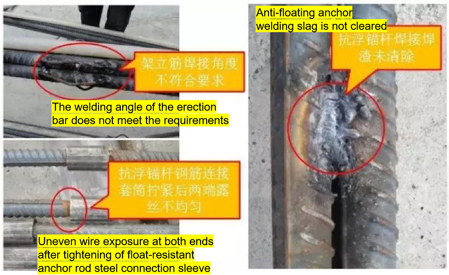 2、The welding quality of the anti-floating anchor rod does not meet the requirements