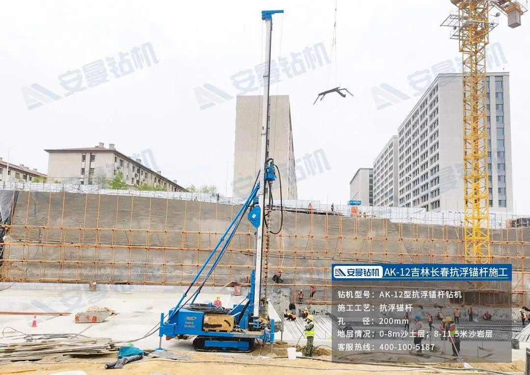 Construction of AK-12 anchor drill with 12 meters anti-floating anchor rod