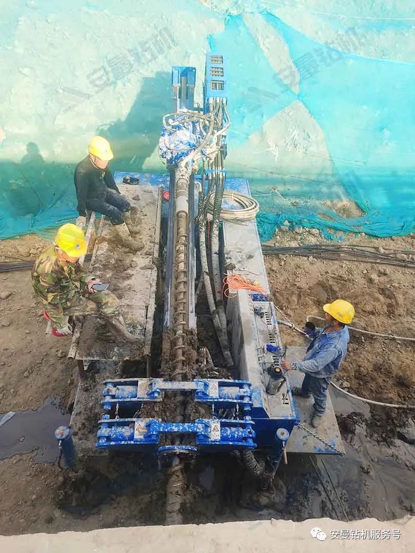3、Start to punch the hole. The first two fast turn to push to the positive turn, fast to enter into the inside, the drilling process should pay attention to the pressure and slag discharge situation.