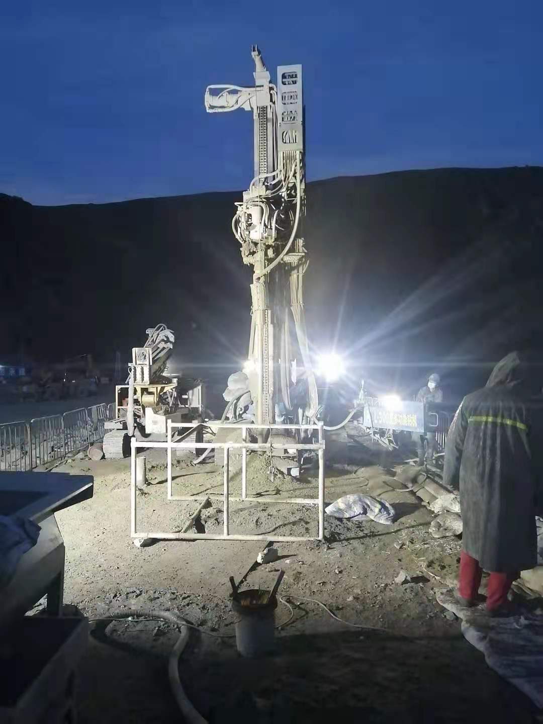 1、The rig is loaded with drill pipe and casing, the rig first adjusts the vertical to the hole point for the first time, and corrects the verticality again for the second time.