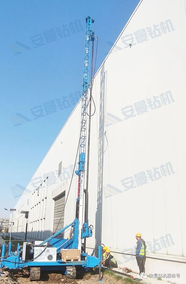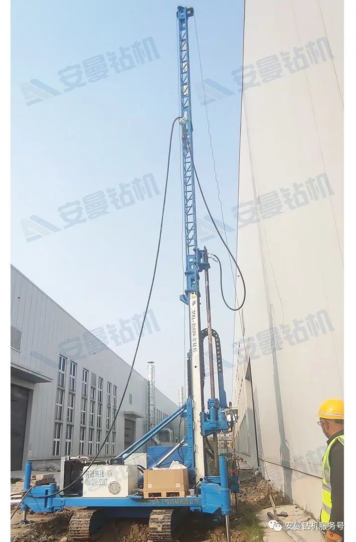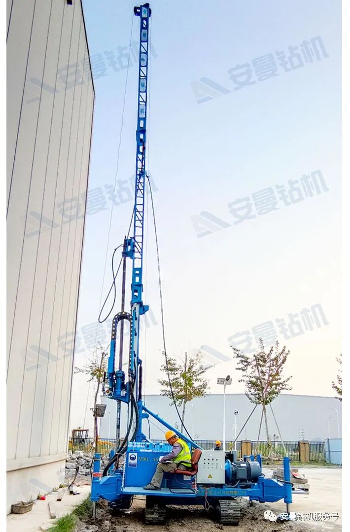 2、Open the drill to the point, adjust the verticality of the drill, align the center of the pile, and support the leg;