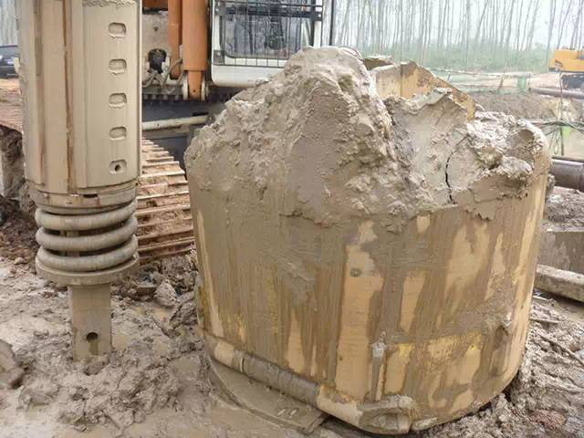 When the cylinder bottom or not fully penetrate the silt layer, easily sink, sink, if drilling soon backfill hole, long tube buried again, if close to the hole increase mud gravity (1.15~1.3) keep the mud head height in the hole, with pillow symmetry in cylinder outside, using channel steel load pole the cylinder frame on the pillow stack, into the hole as far as possible to not clear hole, steel cage rings with pillow stack weight, shorten the filling time.