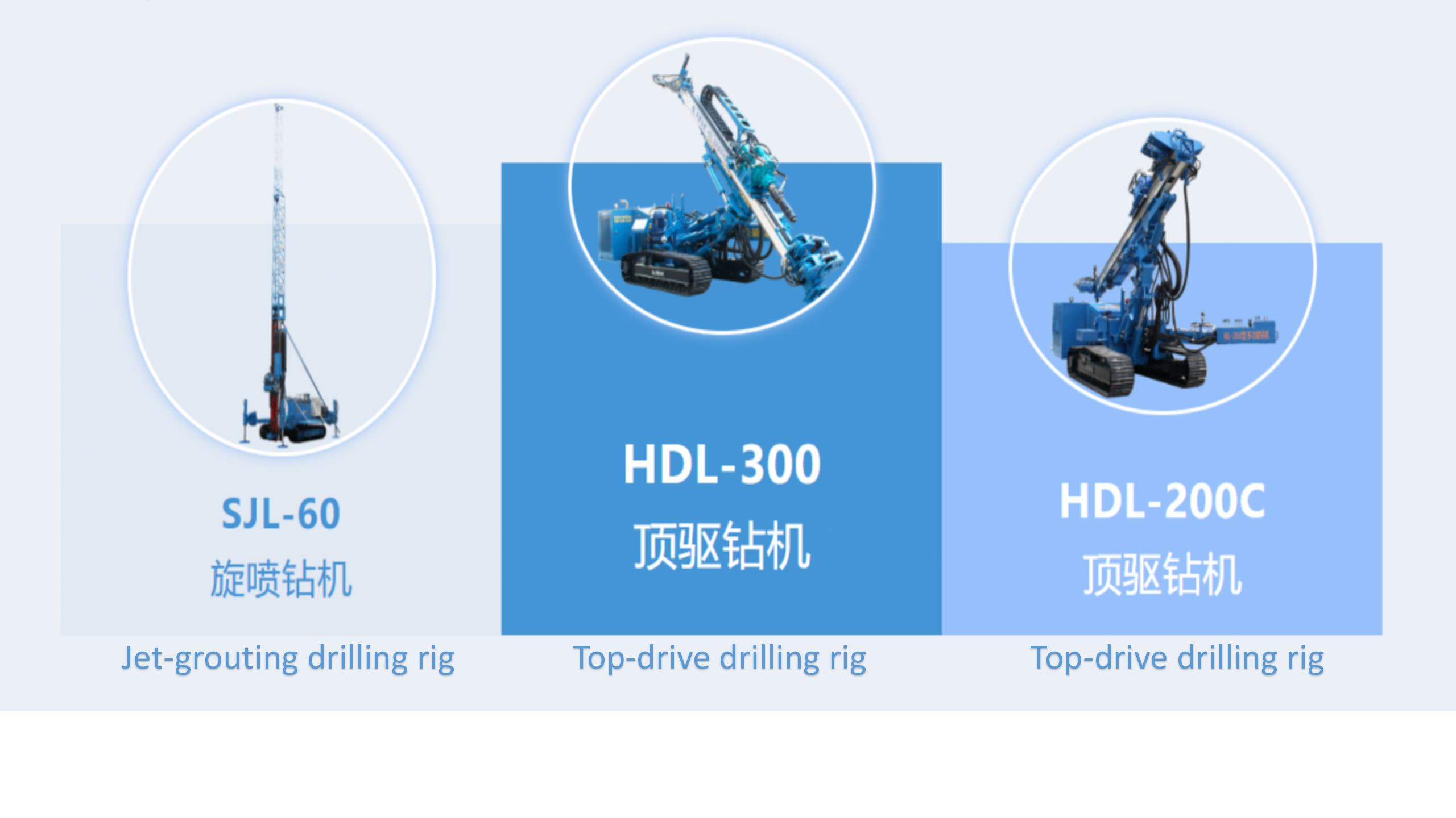 The departure contains 2 top drive rig and 1 rotary drilling rig, combined with the host construction of high pressure pump, air compressor, drilling tools, vulnerable parts, etc., suitable for male, railway tunnel, foundation pit, water conservancy and hydropower engineering construction, including HDL-300 top drive rig was awarded the "first (set)" equipment in Jiangsu province, and complex formation construction at home and abroad, won Singapore, Argentina, Tibet and other foreign customer acceptance, withstand the harsh geological environment inspection, won the user praise.