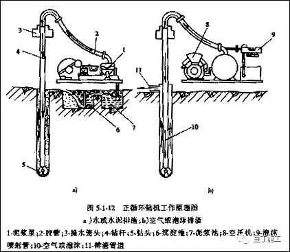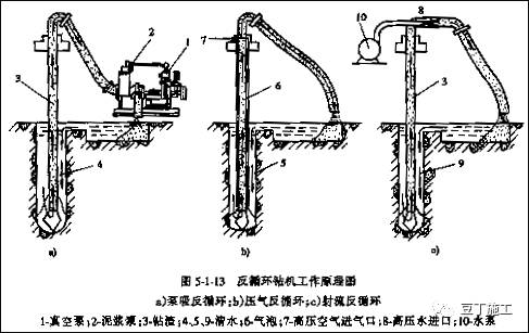 Working cycle of the reverse loop rig (shown below). The working mud cycle of this kind of drilling rig is opposite to the positive circulation direction. The mud with mixed slag enters the mud pump through the drill bit, hollow drill pipe, lifting water head and hose, and then flows from the pump valve into the mud pool, and then the mud is precipitated and then flows to the hole well.