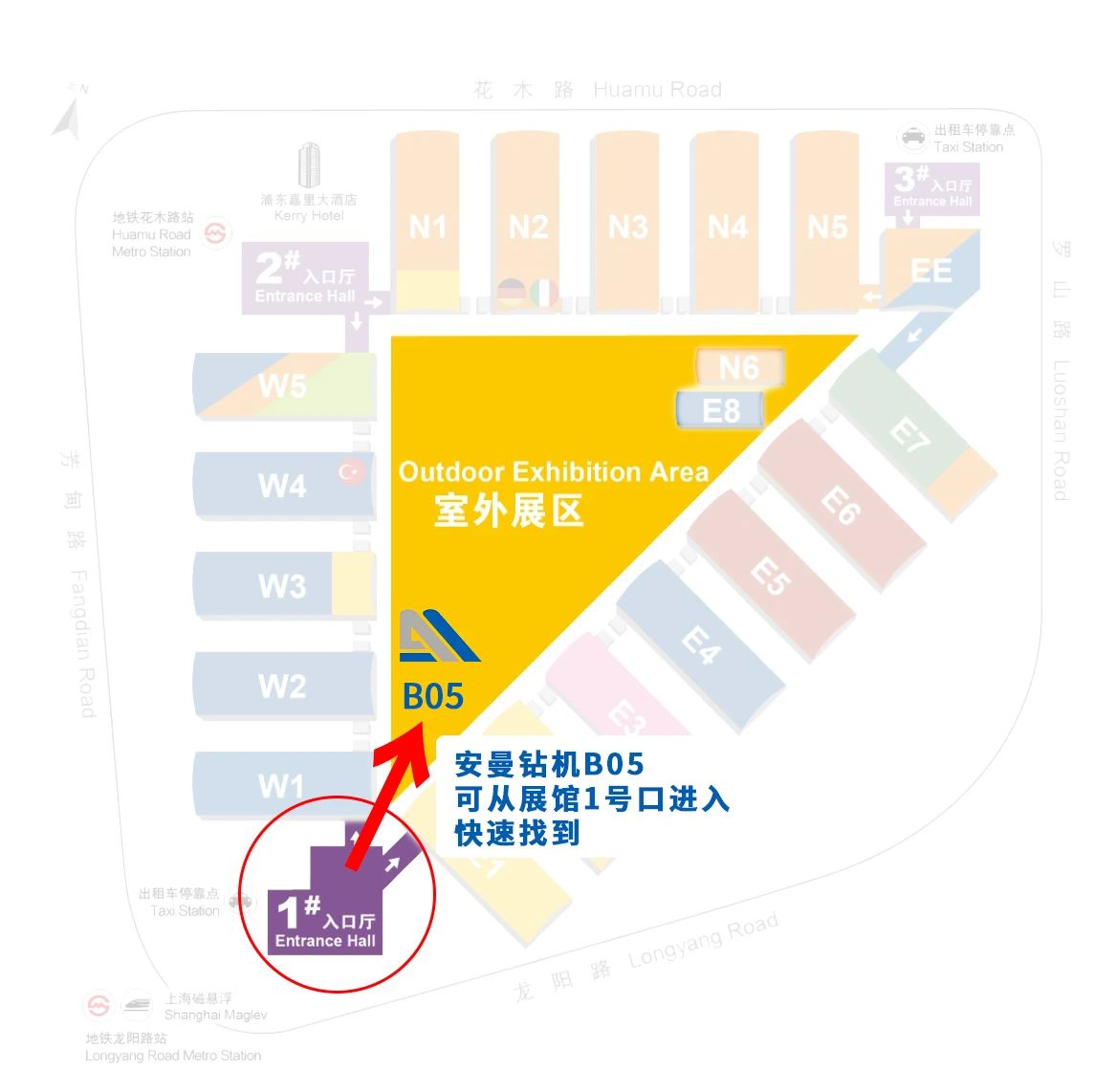 The Anman rig booth (booth no.: B05) is located in the outdoor exhibition area, near the entrance hall.
