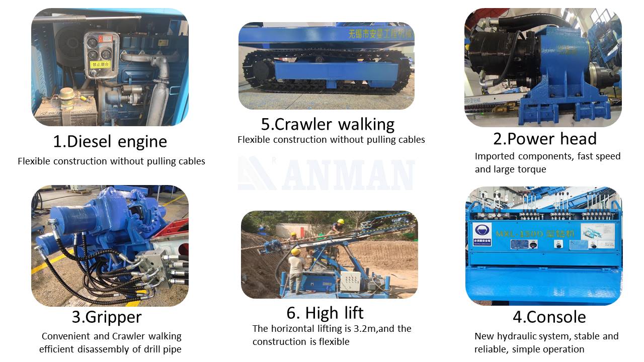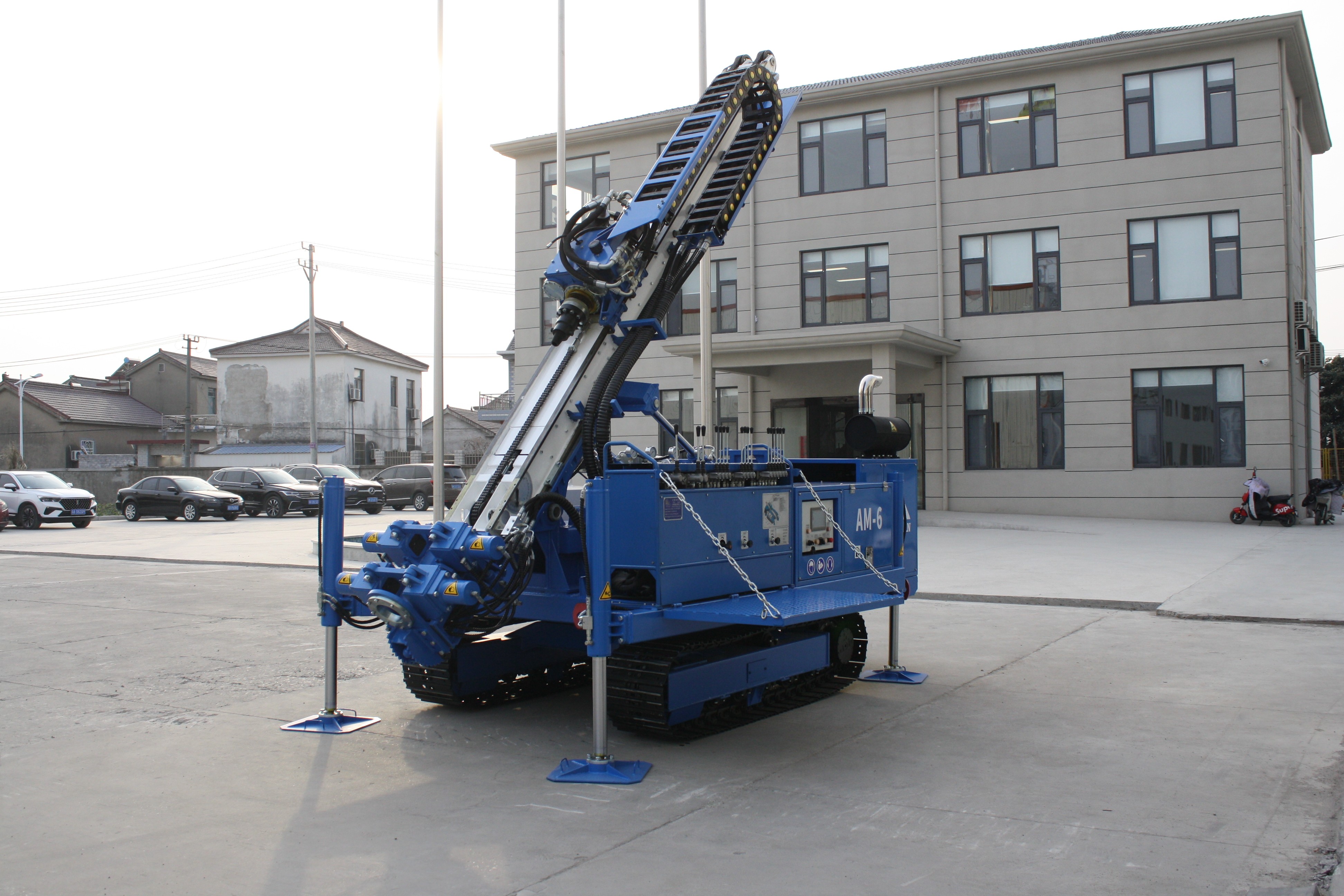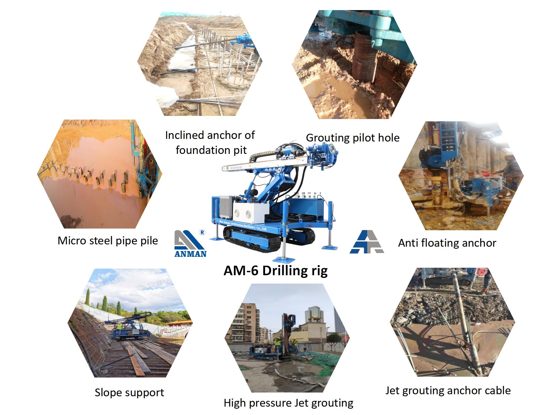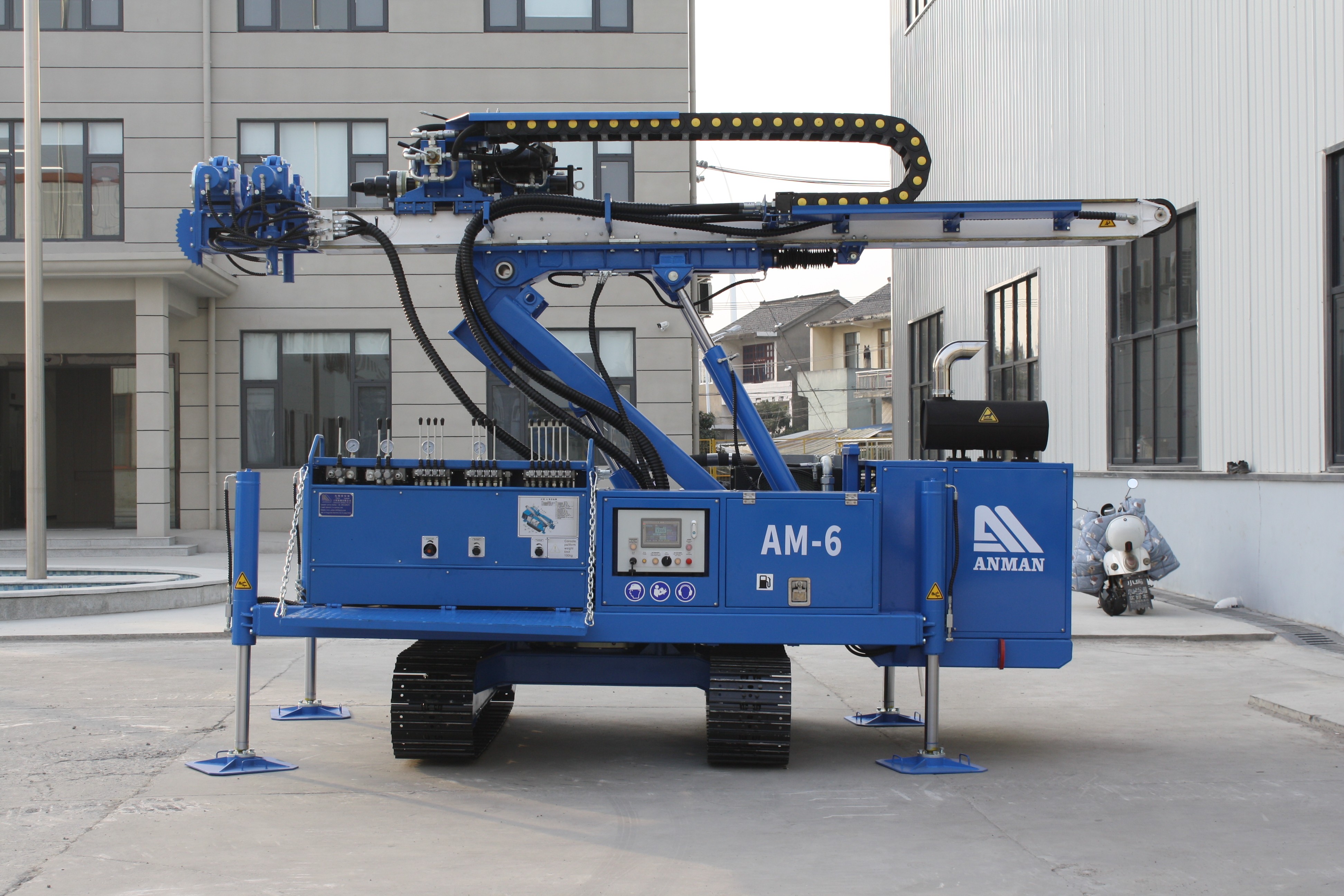 AM-6 High-Lifting Crawler Drilling Rig is a high efficiency drilling rig mainly for anchoring, jet-grouting and dewatering, which is well designed and produced by Wuxi Anman Construction Machinery Co., Ltd. This series of drilling rig is all-hydraulic operated drill in accordance with the construct requirements of subway, high-rise building, airport and the other deep foundation pit.