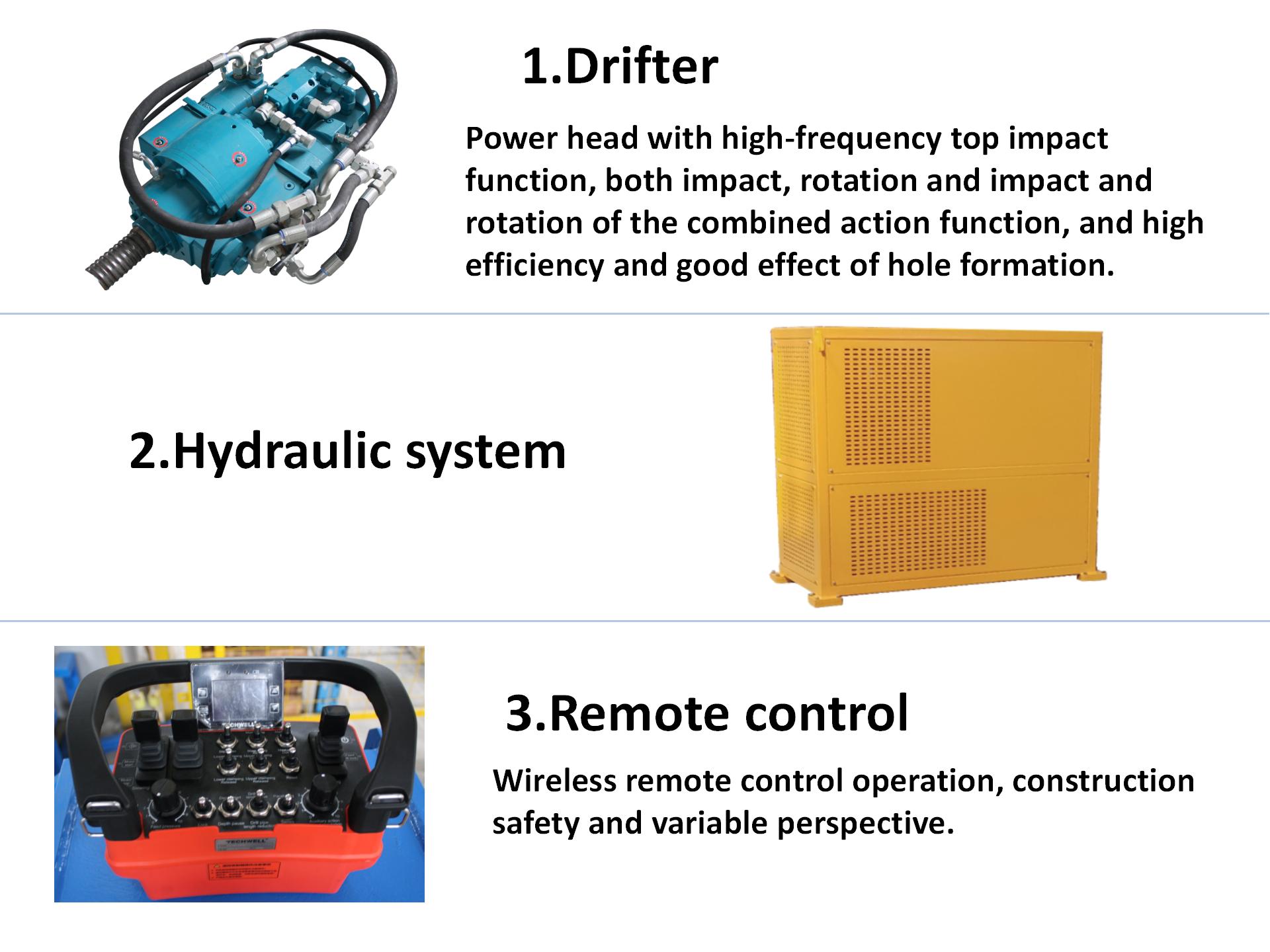 1. Power head with high-frequency top impact function, both impact, rotation and impact and rotation of the combined action function, and high efficiency and good effect of hole formation.