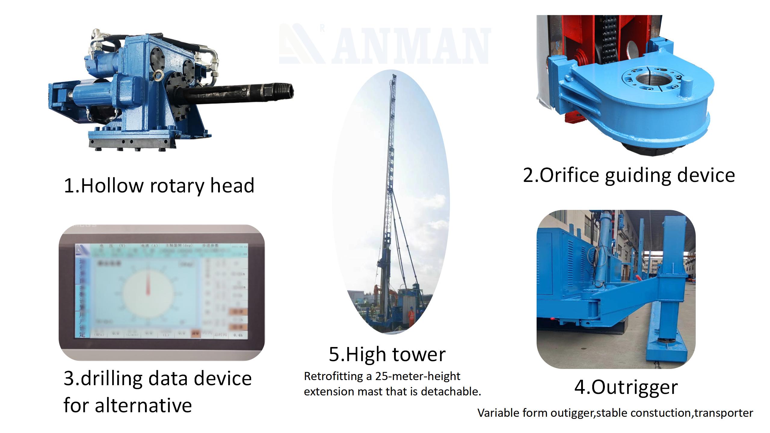 3) With large torque rotary head, combined with our intensive drilling tools, it can drill through directly without making any guiding holes, which can save a lot of time.